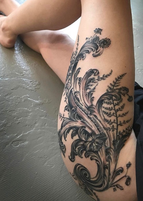 Flaunt your legs every time you step out at the beach with this hip-to-leg tattoo. It’s a piece worth showing off.