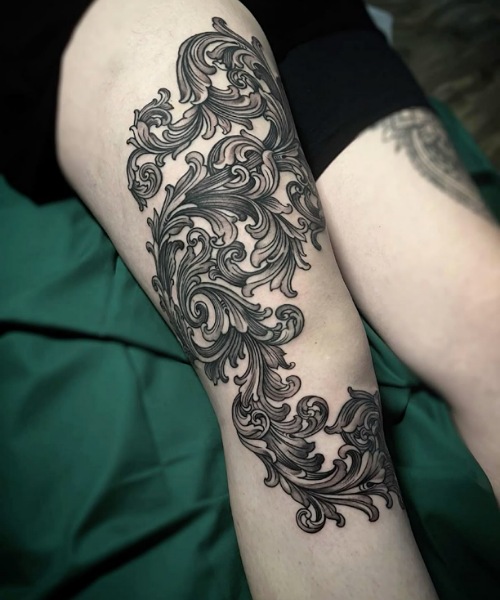 Why don’t you get this beautiful tattoo running down your leg in bold, artistic designs? Get it and make every walk a statement.