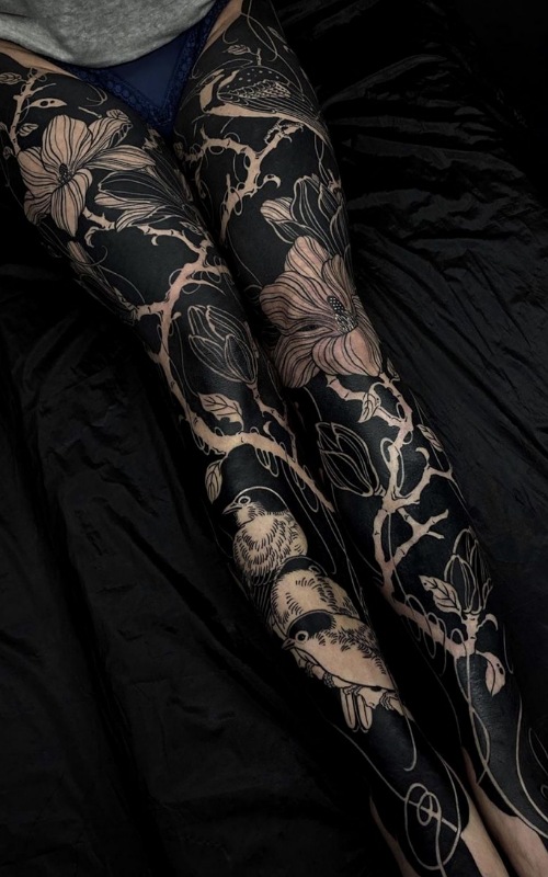 Do you like being a maximalist? Why don’t you go for this tattoo that runs along your leg, resulting in this fantastic design?
