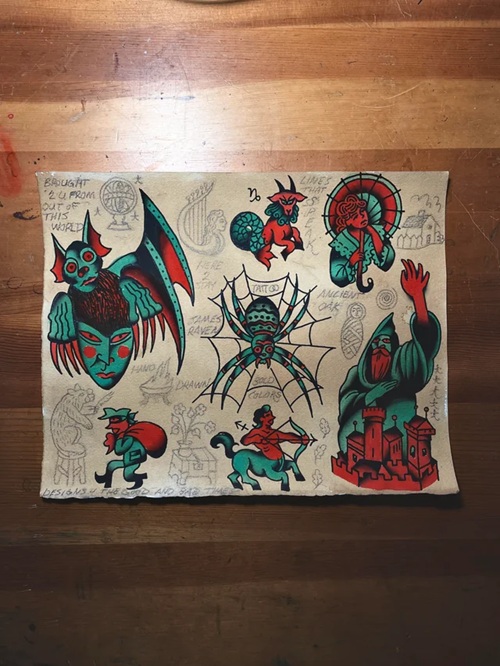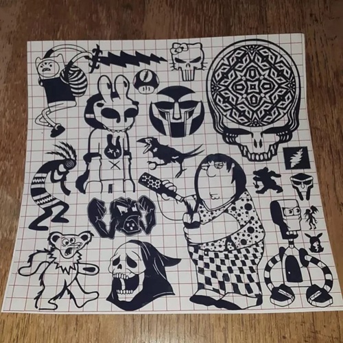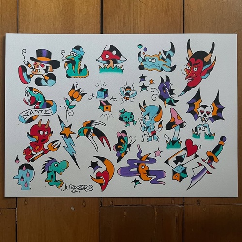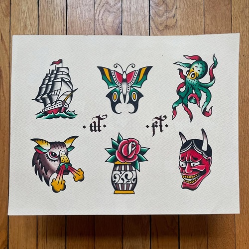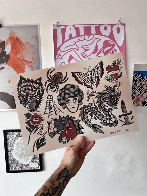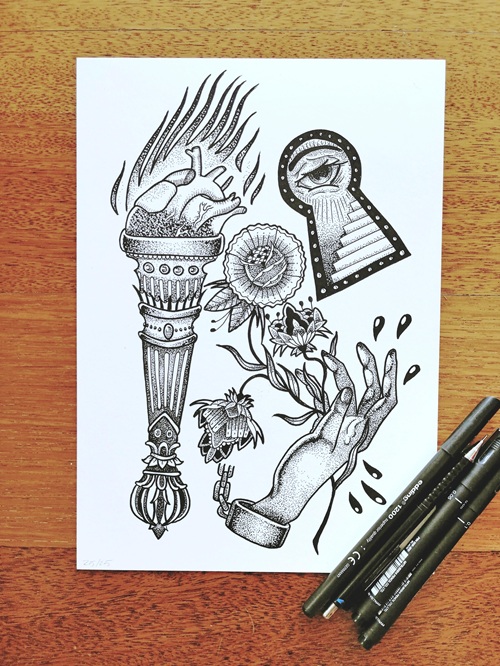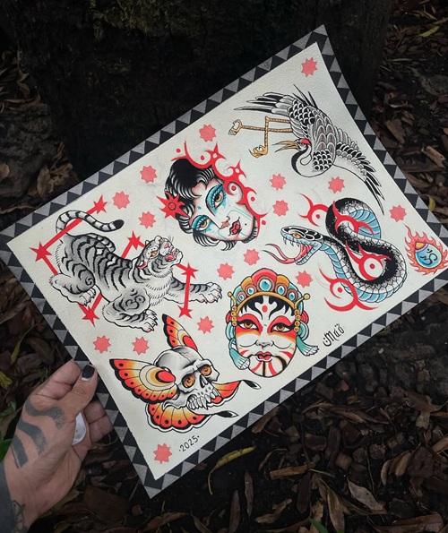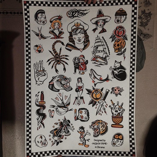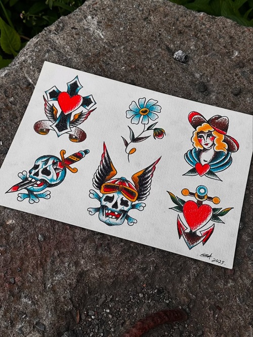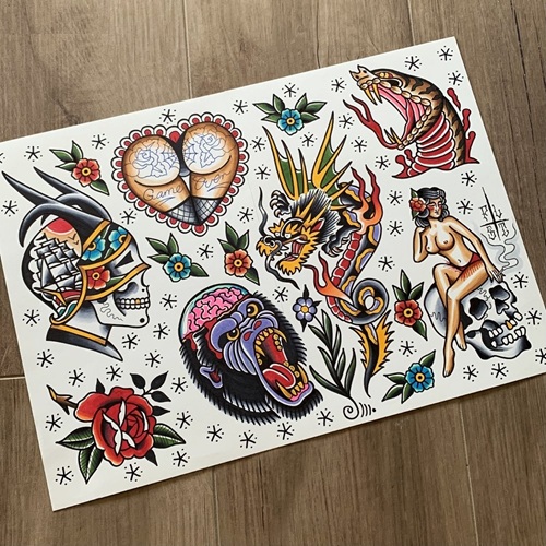Here’s a fantastic flash tattoo sheet option for you. They may look overwhelming, but they will look great once you complete them.