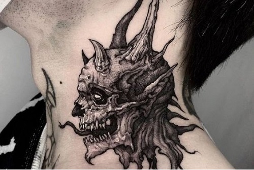Are you all set for Halloween with your costumes, nails, and makeup ideas? Complete the look with this hauntingly cool neck tattoo design.
