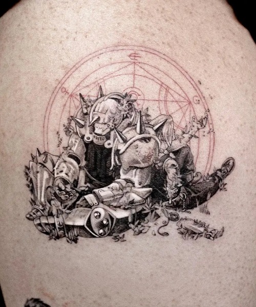 Get anime tattoos inspired by alchemy, brotherhood, and transmutation circles in this guide to Fullmetal Alchemist tattoo ideas.