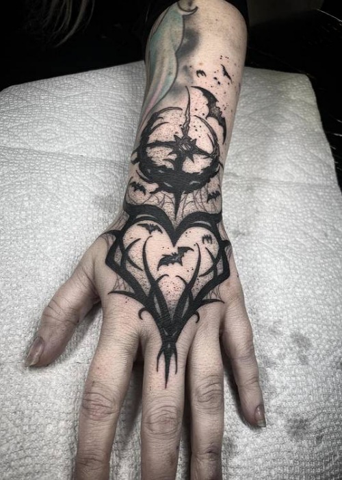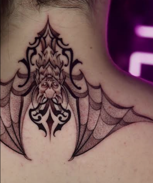 Now this is what we call the perfect tattoo art. The flying bat with the spiderweb pattern is exactly what catches the eye.