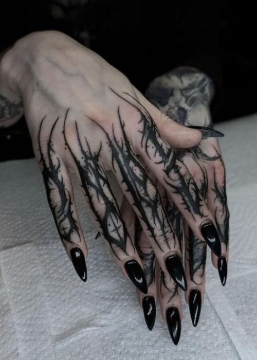 Who would’ve thought that a gothic tattoo could be this feminine? Get it done on your fingers, and the gothic magic unfolds.