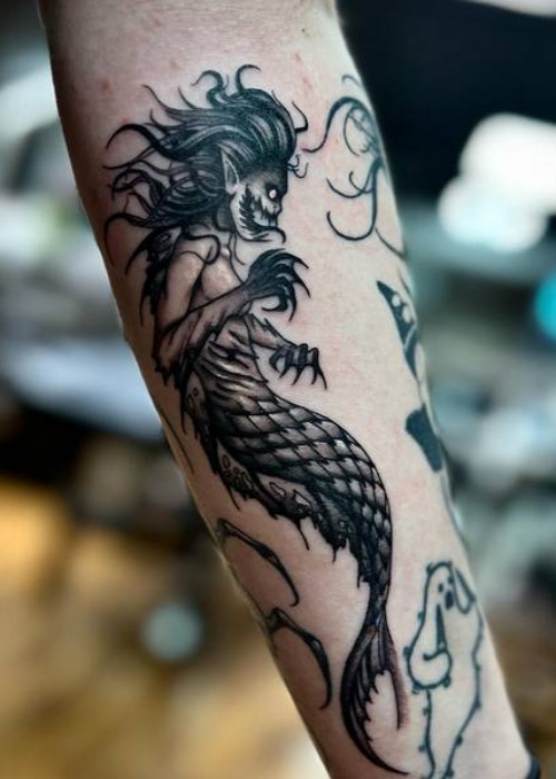 You cannot miss out on this siren tattoo that is also the best Halloween-themed design.