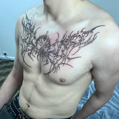 Are you a fan of baroque tattoos? If your answer is yes, then this one on the chest is for you.