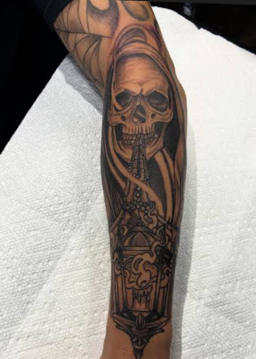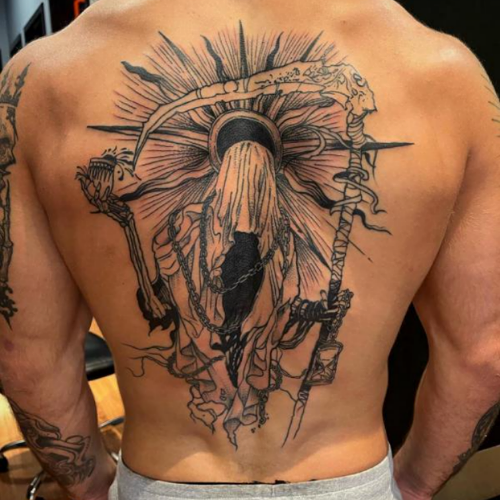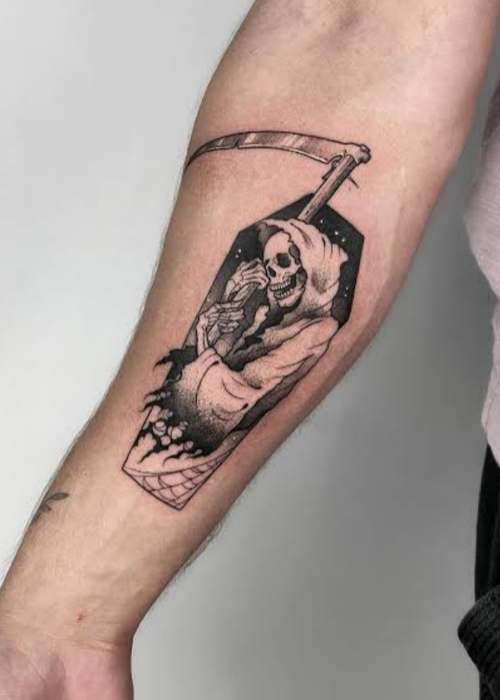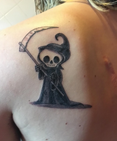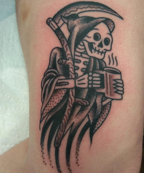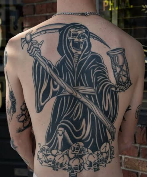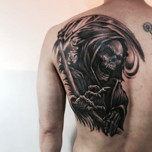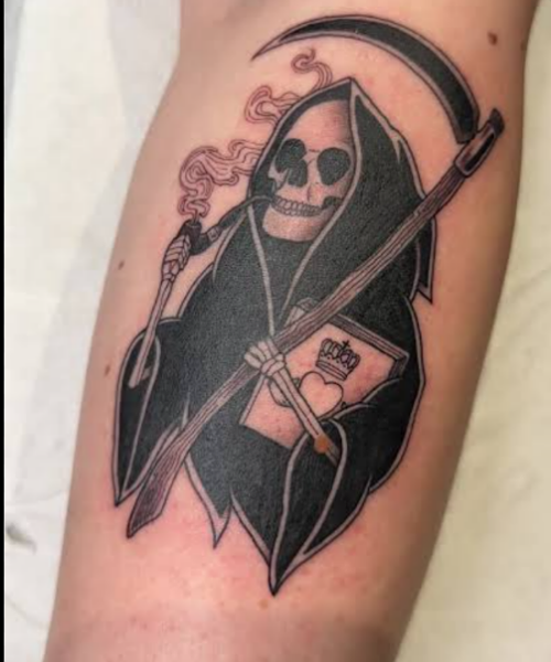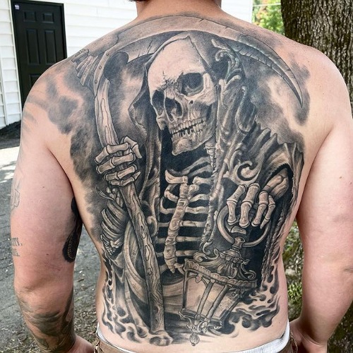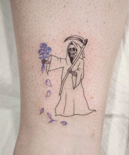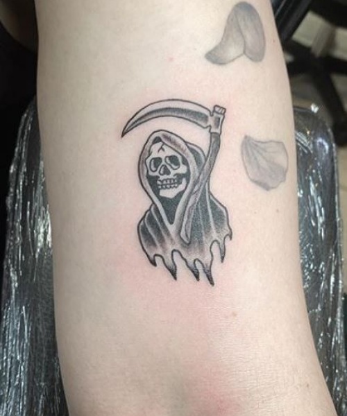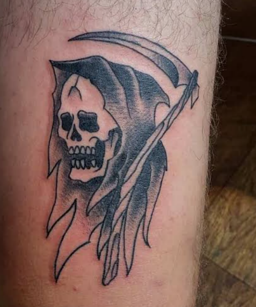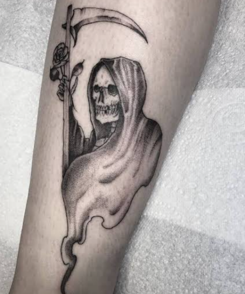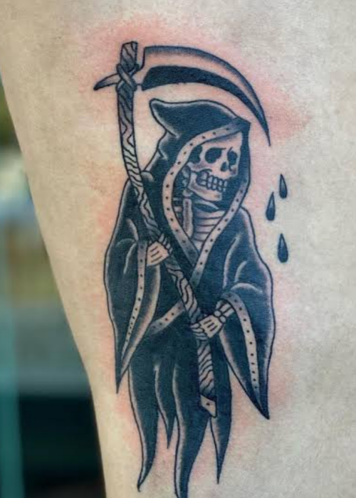 Now, here’s something unique. A grim reaper with teardrops tattoo makes it look like it’s crying. Isn’t that unique?