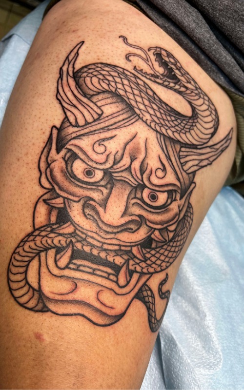 7. Snake Wrapped Around Hannya Mask