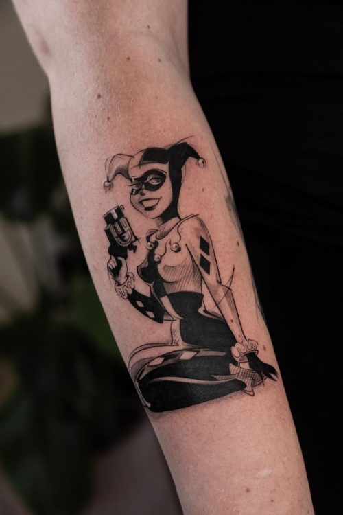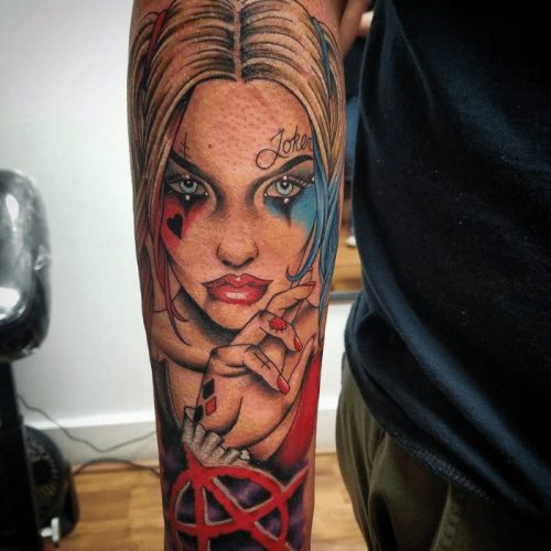 Harley Quinn has made her place in the hearts of DC fans, all thanks to her charisma, and now you should show your admiration for her through ink. So, get one done from the list and see some Joker tattoos too, to make a pair.