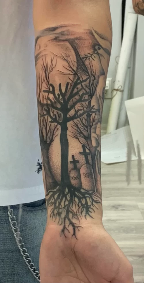 If you’re looking for dark symbolism ink, then here’s one. This represents emotions that have been buried and mirror resentment, guilt, or pain with deep roots.