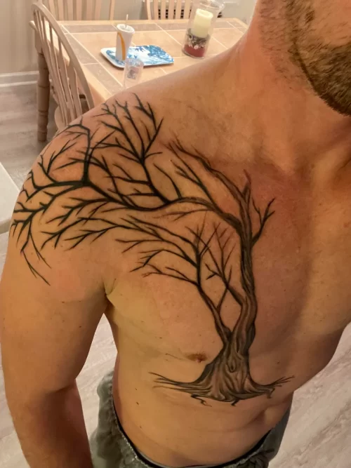 Why don’t we start with this gorgeous chest pattern that runs all the way to your shoulder, creating a majestic piece of body art?