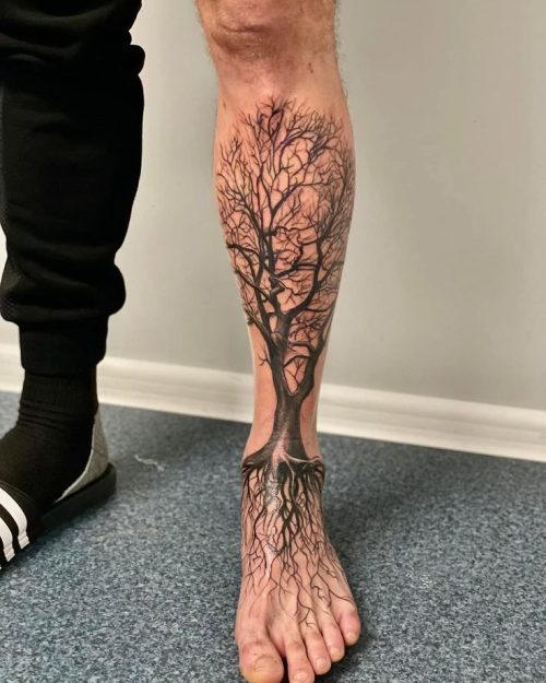 Just look at the intricately done leg tattoo idea. No words can explain how cool it looks. Don’t think much, just get it done.