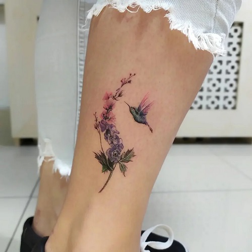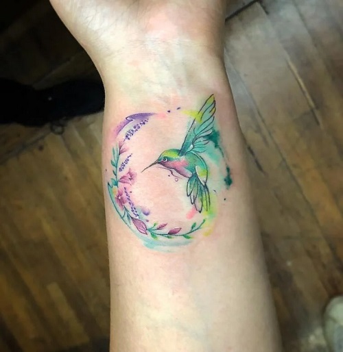 Let’s go ahead with a watercolor-style tattoo of a hummingbird that is perfect if you want a feminine ink idea for yourself.