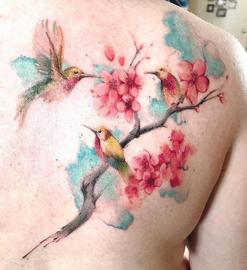 Consider colorful body art featuring sakura flowers with hummingbirds. It’s simply a treat to the eyes.