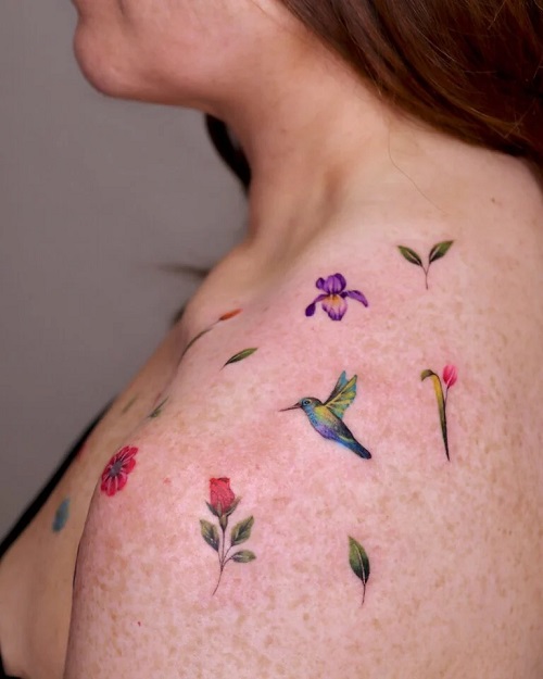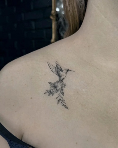 A hummingbird is often used to represent the ability to find happiness and overcome hardships. So, here’s one as a shoulder tattoo.