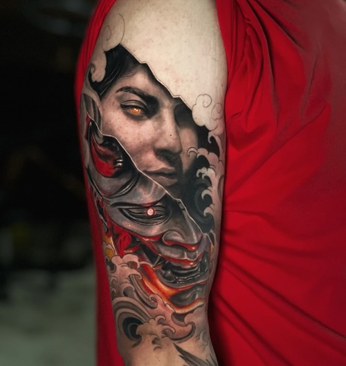 Who said Japanese oni tattoos are all about darkness? You can get one of these inks, blending fierce energy with grace, making it both beautiful and haunting.