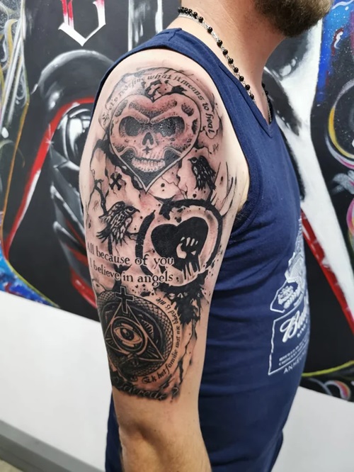 15. Male Half Sleeve Upper Arm Tattoo