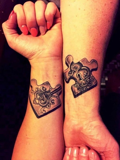 Do you feel empty without your partner and vice versa? Then this puzzle-piece style forearm design should be your choice.
