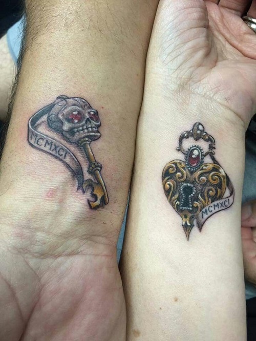 Show the world that you are a power couple with these key and lock couple tattoos that promise forever through simple body art.