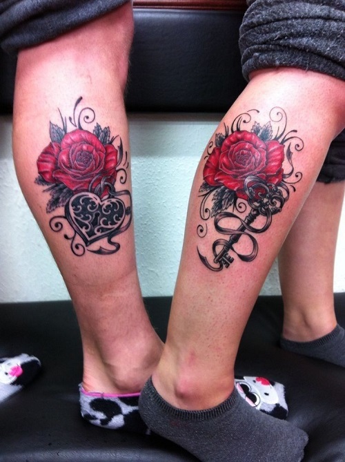 Roses have always been associated with love and passion, and if that describes your relationship, go ahead and get this leg tattoo done.