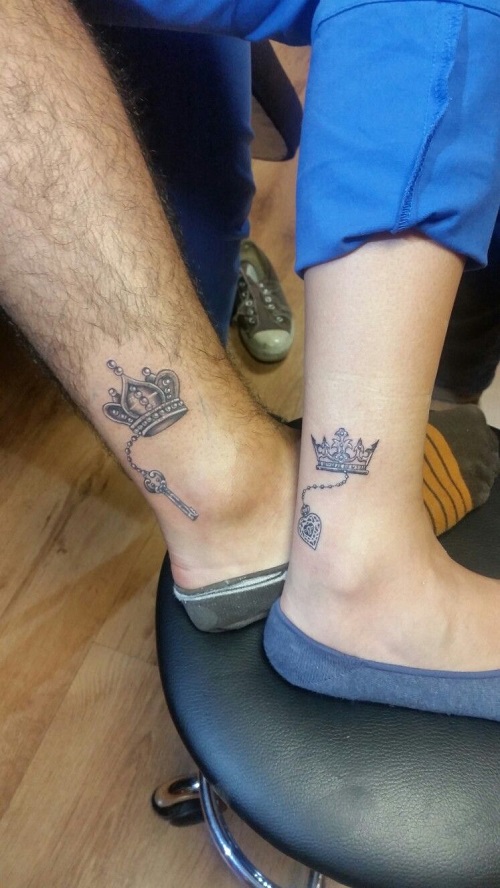 Be a royal couple and get this crown symbol done as body art. It would be nice and minimal way to decorate your ankles with a matching tattoo design.