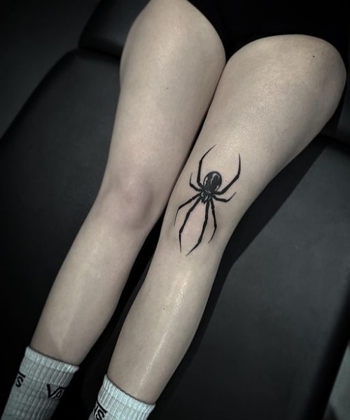 A spider crawling down your leg can be a great spooky tattoo idea that both men and women can try. Check out some more spider ink.