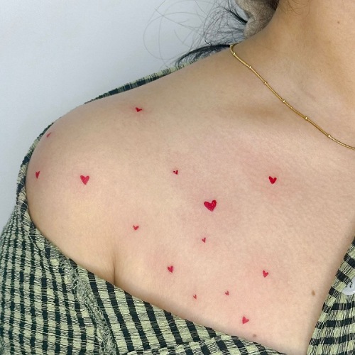 If you like the idea of getting a freckle tattoo, then these hearts scattered across your shoulder and chest are the best option.