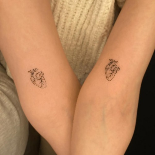 Get a realistic heart with your partner if you love each other to death. Here are more matching couple tattoos for you.