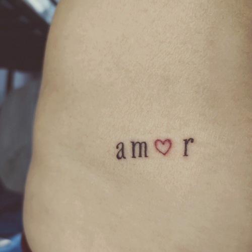 Get a minimal one on the thigh that conveys love, and make sure to check out some more thigh tattoos right here.