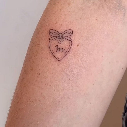 Show your love for your partner with this infinity tattoo featuring a tiny heart and a letter that can be easily personalized.