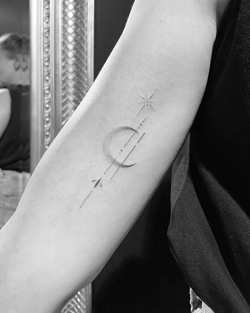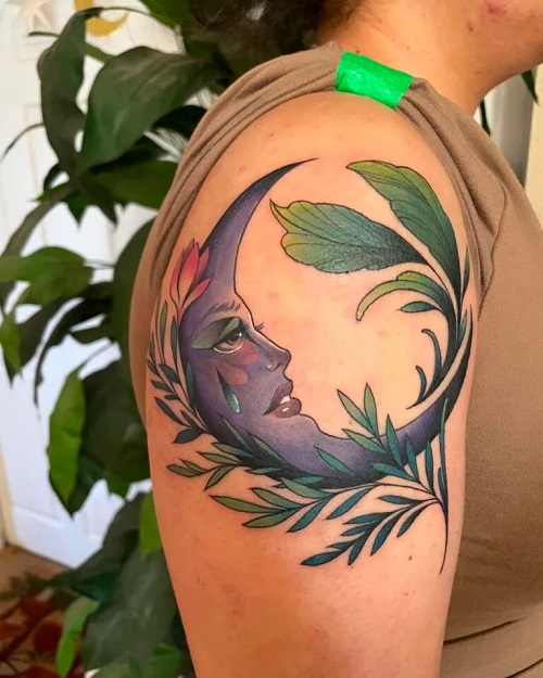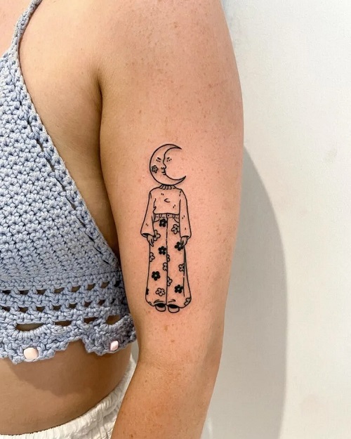 A crescent moon tattoo means femininity and protection against negativity. If you relate to this, then you should get this teardrop moon done on your upper sleeve.