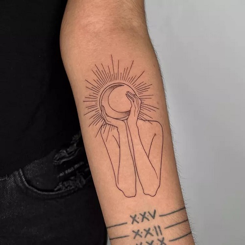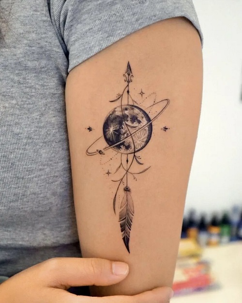 Full moon tattoos symbolize completeness and mystery. So, why not get this one done if you love the mystical qualities of the night sky?