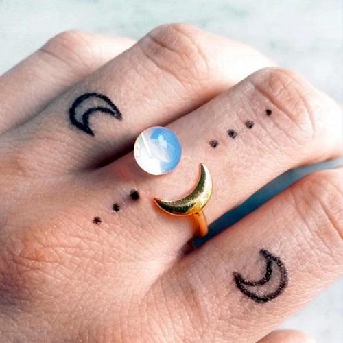 Now this is what you call the perfect minimal tattoo. The two crescent moons on each finger catch the eye and make for an attractive piece.
