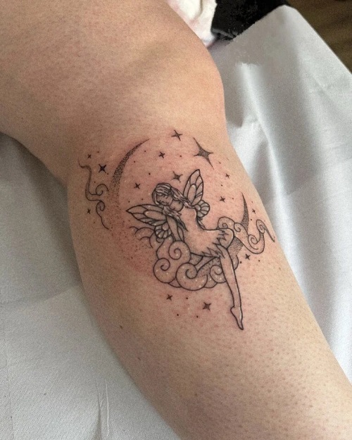 We don’t want to say much about this one because look at it. The fairy on the moon creates a dreamy piece. Here are more such dreamy angel tattoos for you.