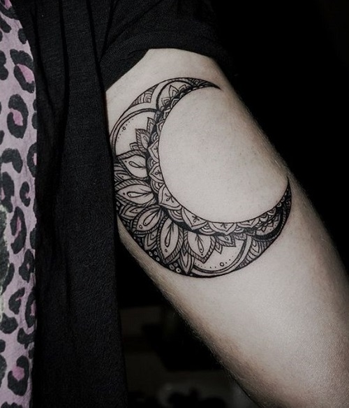 Here’s a body art crescent moon for you with intricate mandala art. Doesn’t it look pretty?