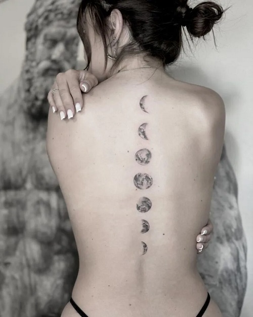 Why don’t you get this beautiful tattoo that runs down your spine with phases of the moon adorning the skin?
