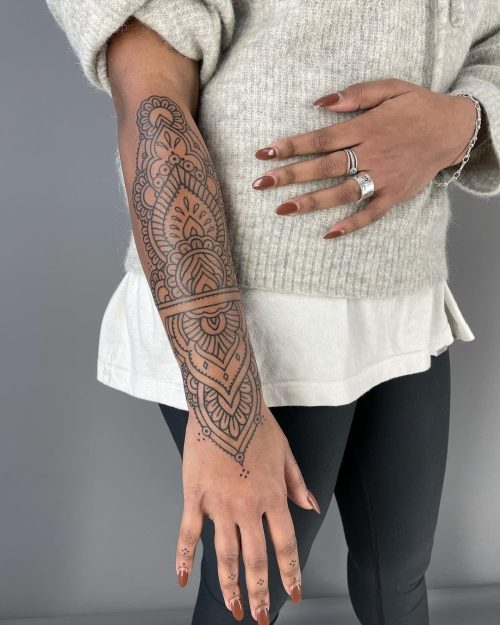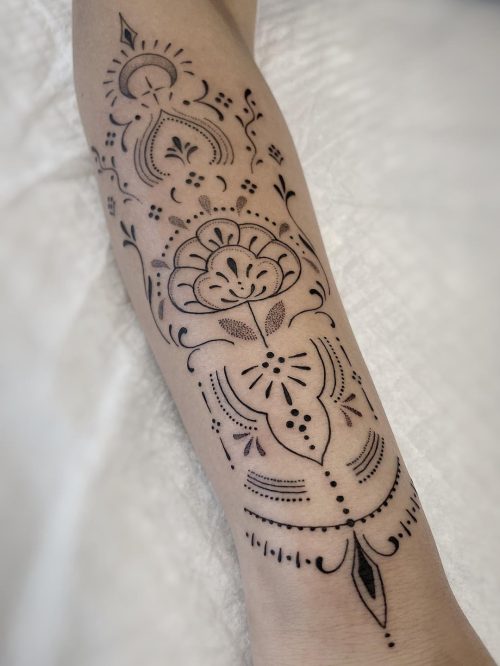 Ornamental tattoos are beautiful, decorative pieces of art that emphasize calm and cool, incorporating mandalas, filigree, and even henna. Plus, they symbolize protection, balance, growth, and spiritual connection.