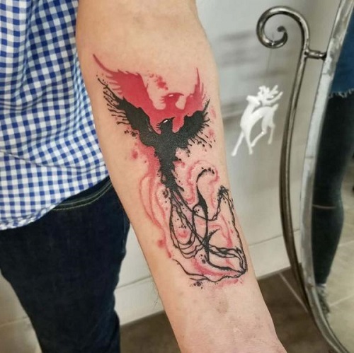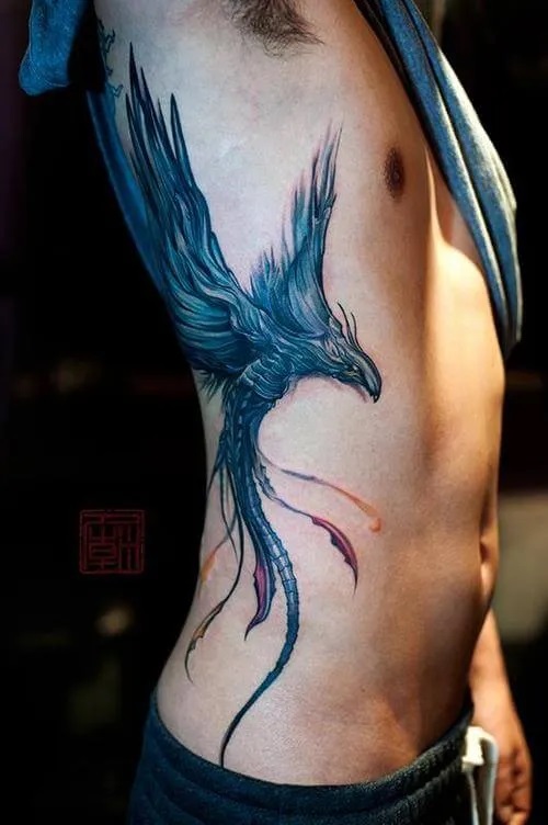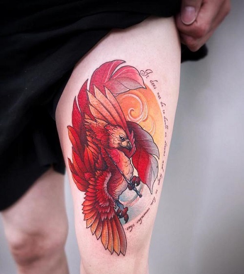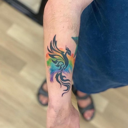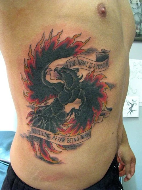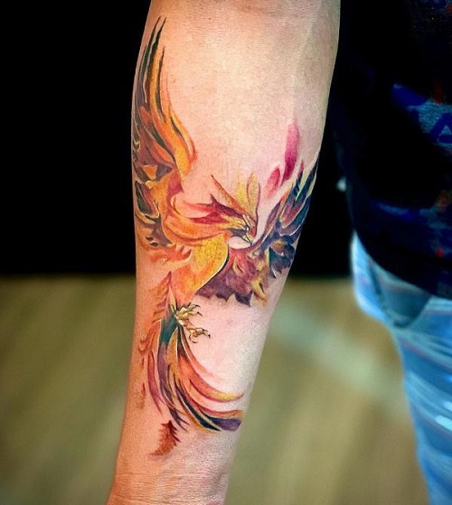 Here’s a lovely piece with a tiny and colorful phoenix tattoo. Beautiful, isn’t it? Here are some more phoenix tattoos for you.