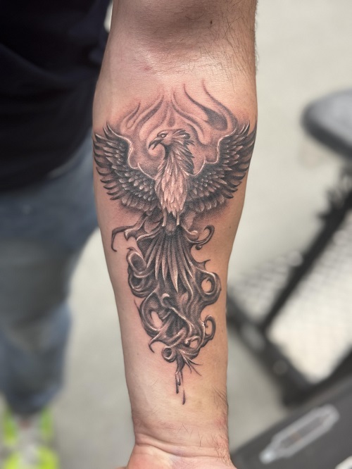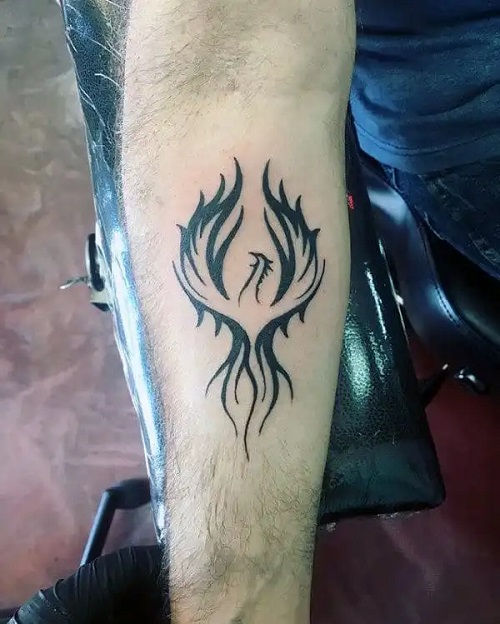 The simplicity of a phoenix is seen in this forearm design. Despite being plain black, it still stands out.