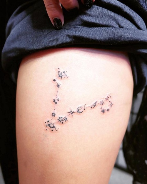 For those who love fine lines and precise work, here is a fine-line tattoo idea featuring their star sign. You can turn it into a beautiful spine tattoo.