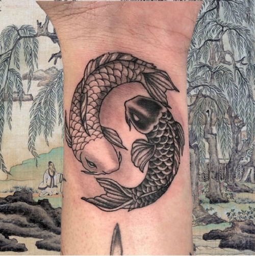 Another tattoo design, but with bold shades and strokes that give these fish an illusion of rapidly moving round and round. Cool, right?