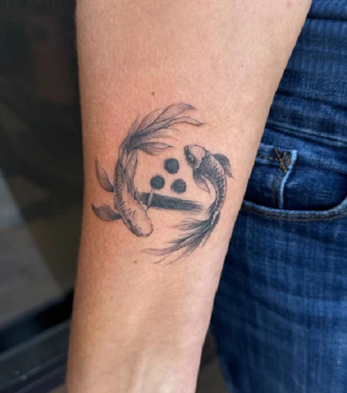 Here’s an adorable and delicate tattoo design. With its dainty look and cute detailing of a small flower with a fish, it is the perfect first-time tattoo idea.