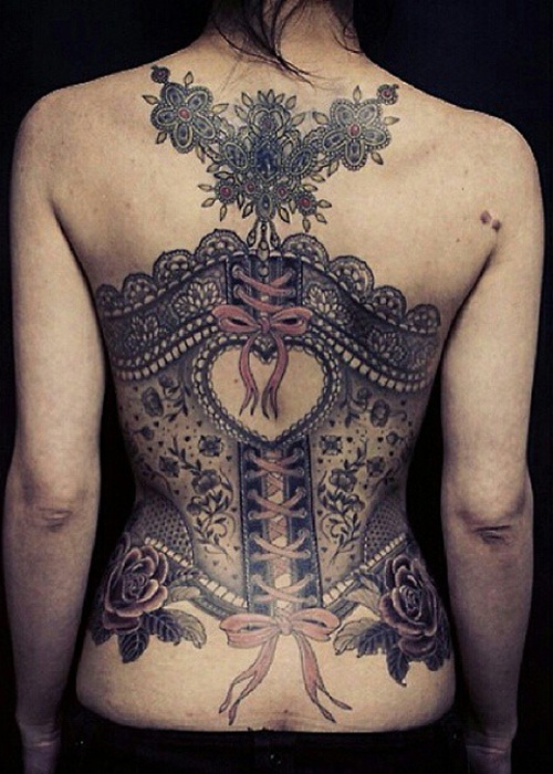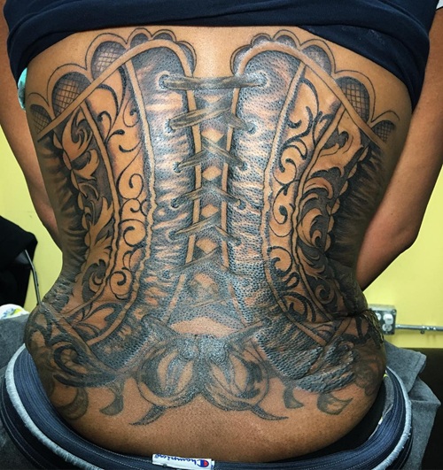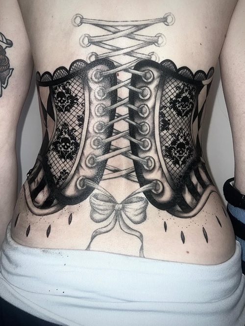 9. Back Corset Tattoo Designs