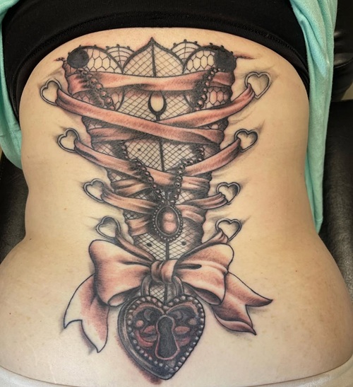 11. Lower Back Corset Tattoo