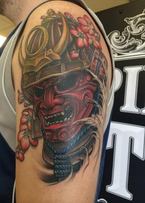Samurai are known for their bravery and strength. Their masks, shields, and weapons are all worthy of admiration and respect. Beyond being a symbol for strength and loyalty, samurai tattoos are often mixed up with cherry blossoms to symbolize the Japanese concept of the fleeting and beautiful nature of life. Stating the fact that samurai themselves were aware of their mortality and were ready to die at any moment on the battlefield, hence living each day to the fullest with purpose.