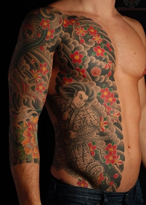 Samurai are known for their bravery and strength. Their masks, shields, and weapons are all worthy of admiration and respect. Beyond being a symbol for strength and loyalty, samurai tattoos are often mixed up with cherry blossoms to symbolize the Japanese concept of the fleeting and beautiful nature of life. Stating the fact that samurai themselves were aware of their mortality and were ready to die at any moment on the battlefield, hence living each day to the fullest with purpose.