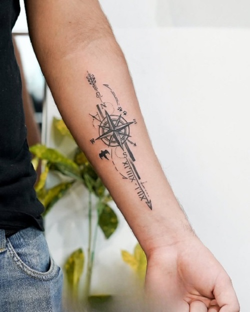 The classic compass tattoo symbolizes direction, protection, and safe travel. Why not show just that with this cool design?