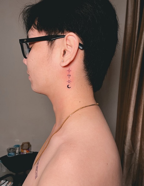 Think of the star, the moon, and the sun. All celestial bodies are represented in the form of a tiny behind-the-ear ink design here. Cool, right?