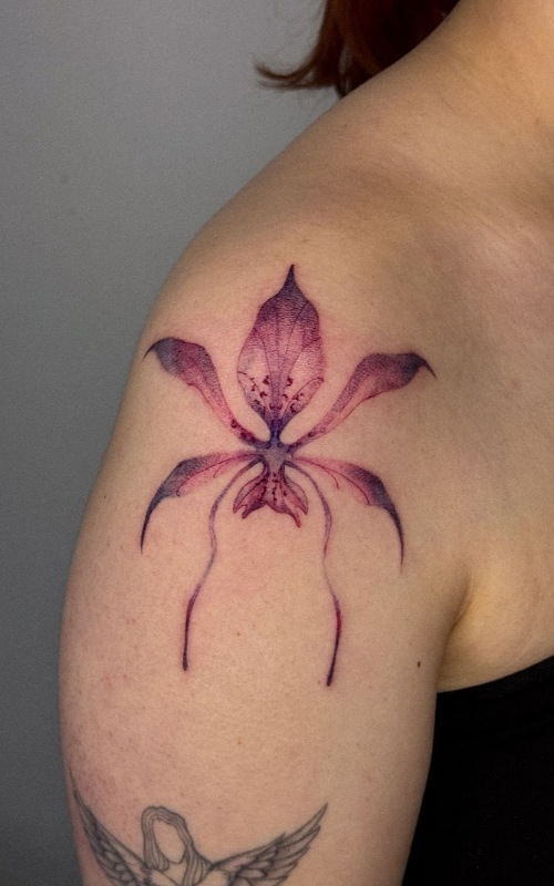 Tattoos are meant to be personalized. Here’s an orchid that represents deep affection, elegance, and exotic allure.