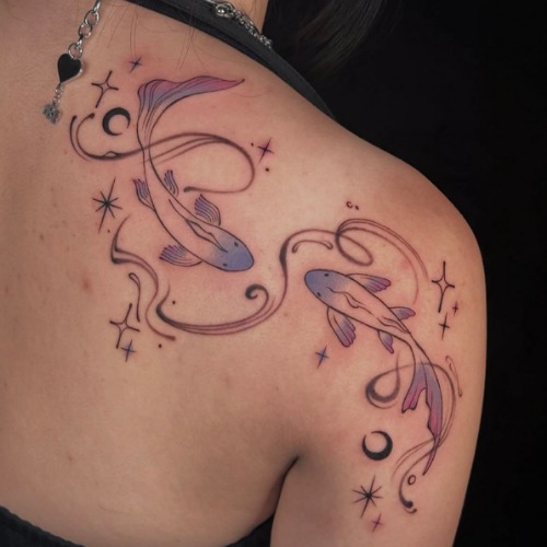 Why don’t you choose this beautiful koi fish tattoo that runs along your shoulder? Pretty, right? Here are some more koi fish designs for you.